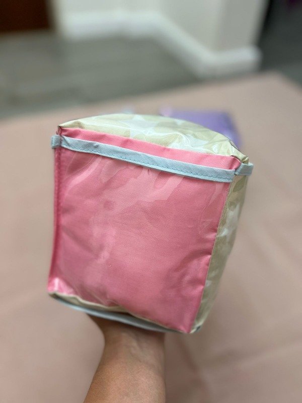 Tiene bolsillos de nylon cristal reforzados con cinta al biés, permitiendo personalizar cada cara con tarjetas, imágenes, palabras, números o consignas.